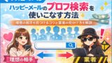 選別ができたら、次は返信をもらえる文章設計です。具体的な例文や成功パターンは、【例文あり】ハッピーメールのメッセージ完全攻略|返信率を上げてLINE交換まで進める方法】で詳しく解説しています。