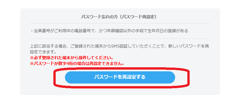 (アプリ版)電話番号を登録している人はSMSでパスワードを照会する