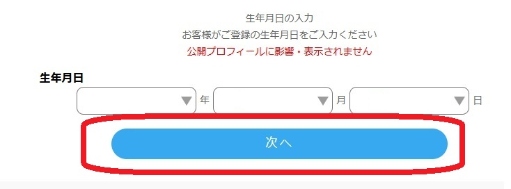 SMS認証が正常に完了すると、次の画面へ進みます。