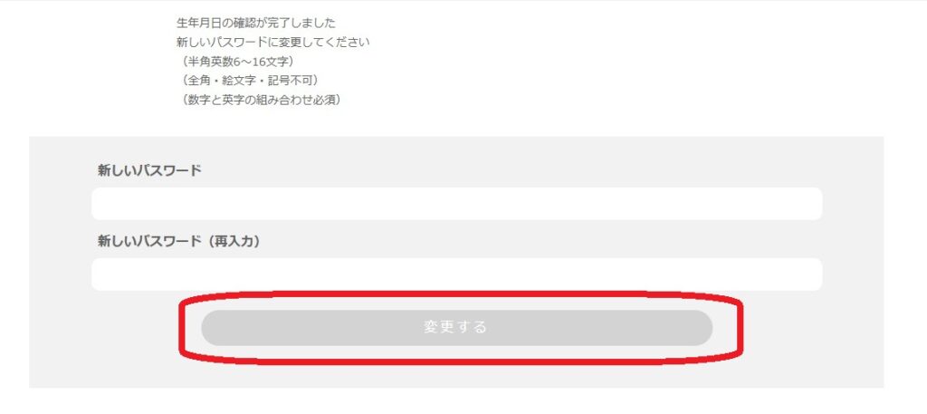 新しいパスワードを入力する画面が表示されます。新しいパスワードを入力し、「変更する」をクリックします。