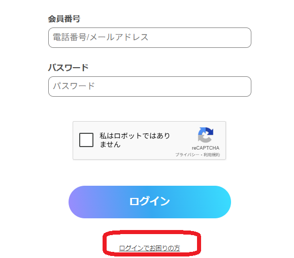 ログインボタンの下にある「ログインでお困りの方」をクリックしてください。