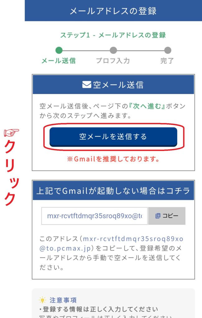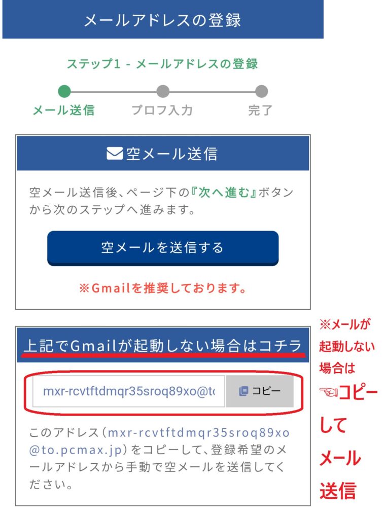 PCMAXでは、確認メールが届かないと会員登録を完了できません。