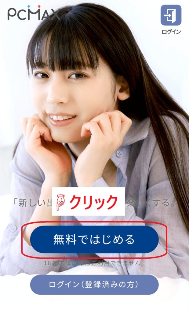 まずは、PCMAXの公式サイトにアクセスしましょう。トップページにある「無料ではじめる」ボタンをクリックすると、