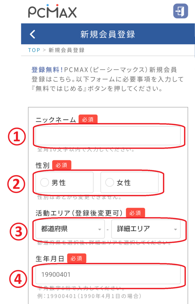 PCMAXの会員登録の方法、
