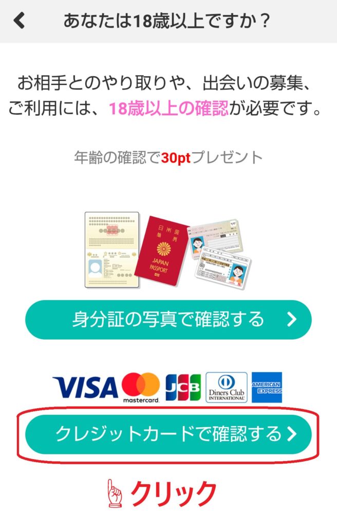次に表示される年齢確認方法の中から「クレジットカードで確認する」を選んでタップします。