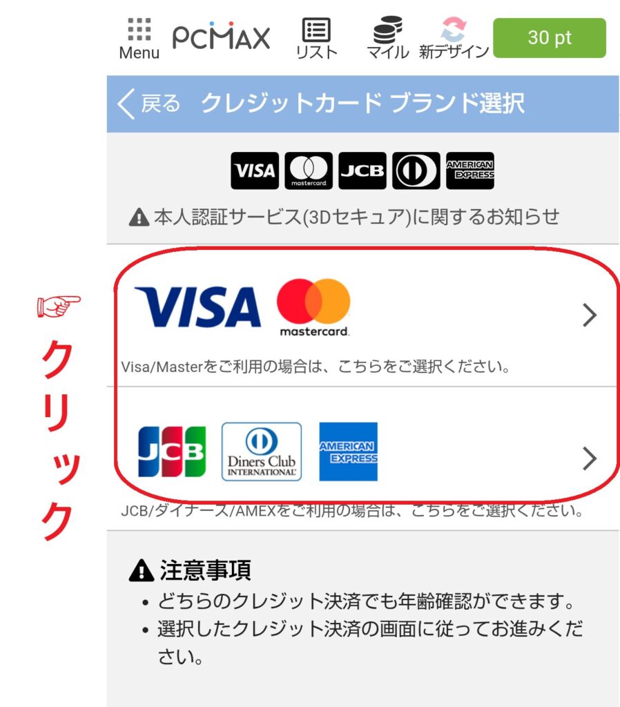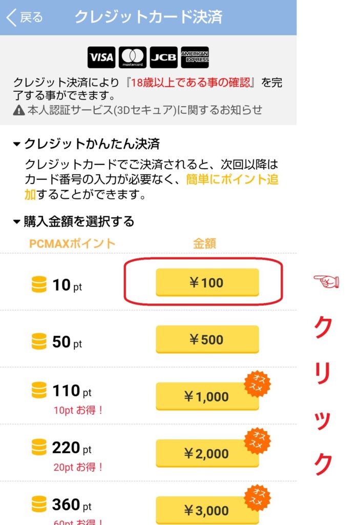 一方、クレジットカードを使う場合は、カードでポイントを購入するだけで自動的に年齢確認が行われます。クレジットカードは、原則として18歳以上でなければ発行できないため、カード決済自体が年齢確認として扱われる仕組みです。