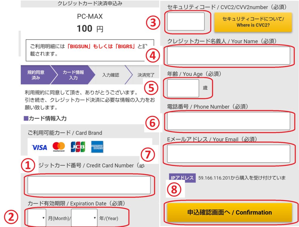 【ステップ7:クレジットカード情報を入力する】